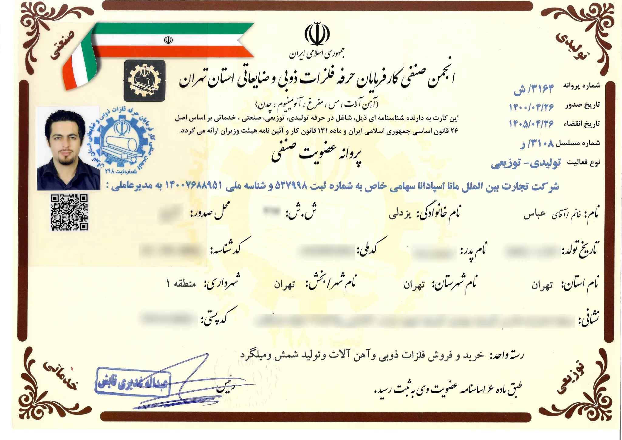 - عضو انجمن صنفی کارفرمایان حرفه فلزات ذوبی